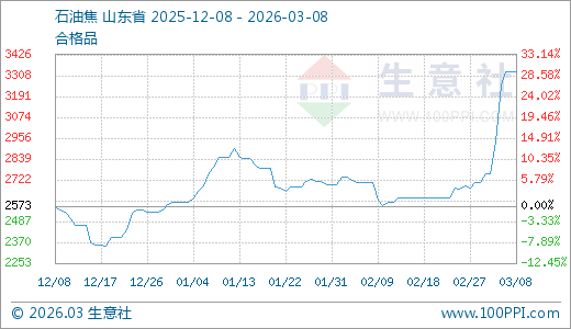 03月08日石油焦3328.25元/吨 5天上涨20.77%